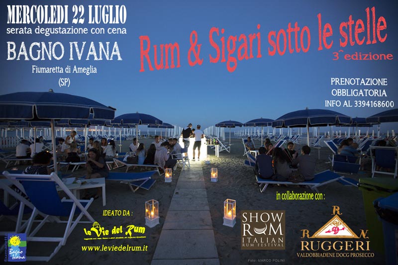 Mercoledi 22 luglio 2015 vi aspetto al Bagno Ivana di Fiumaretta di Ameglia (sp) per l’evento Rum e Sigari sotto le stelle 3a Edizione.